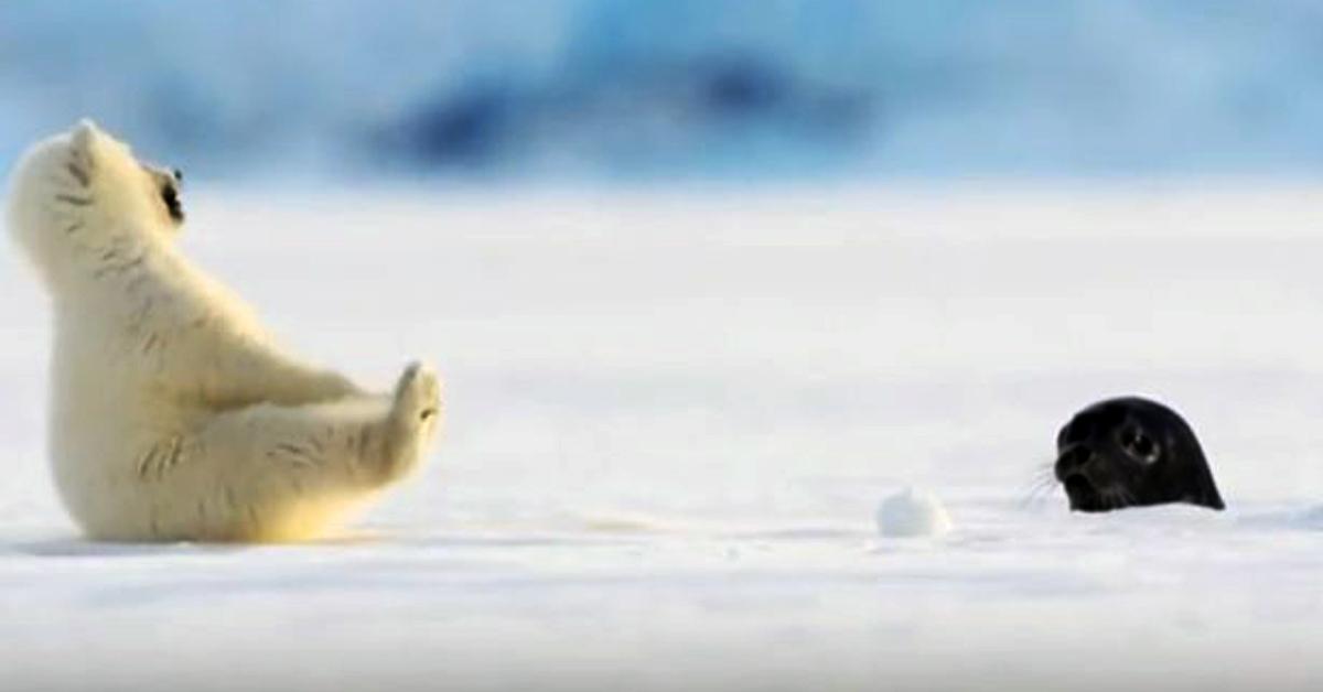 Polar Bear Cub Freaks Out By Baby Seal Who Just Met In The Cutest Wildlife Footage